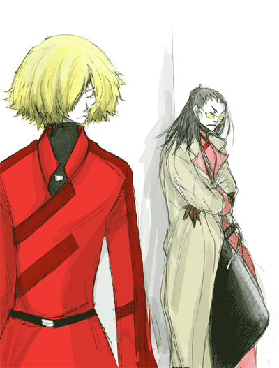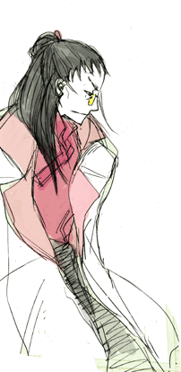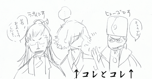 気分転換に舞台土産のDVD第一巻(安かったので冒頭の大戦シーン保存用に衝動買い)を開けたら、一話目と二話目の絵コンテがついてて、なぜかヒョーゴがキララをさらってるコンテ絵の横に「テッサイが・・」の説明。・・?初期設定時はヒョーゴとテッサイのデザインが逆だったんですね!(↑絵がパニくってる)