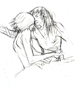 アニメと小説のバイオレンス仕様が好きなので、基本殺し合いはしてもはだかでいっしょに寝てるのなんてありえないんですが、そこが自分に忠実(笑)。それ以前にちゅうひとつ描いたことなかったんだっけか・・。